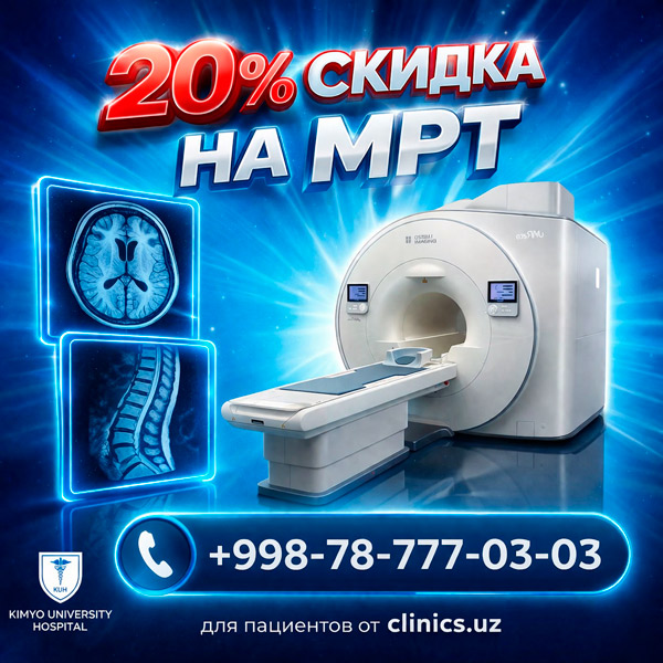 СКИДКА 20% на МРТ нового поколения в Kimyo University Hospital!